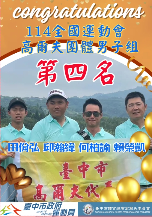 賀!臺中市代表隊於114年全國運動會高爾夫賽再創佳績!